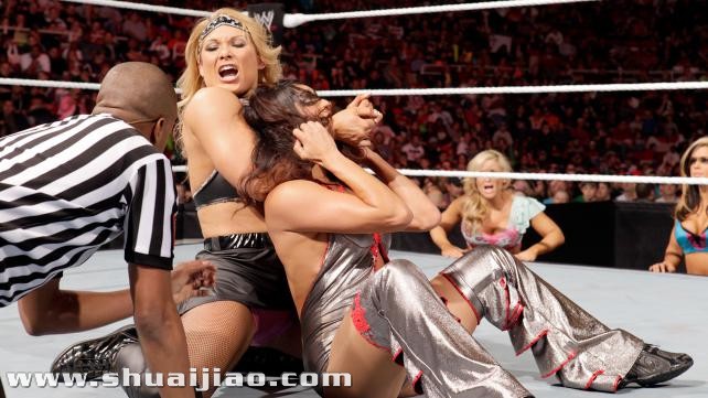 强悍的Beth举起Nikki就是一记Mi莉塔(Lita)ry Slam,Backbreaker送上,Nikki基本毫无反抗之力,勉强挣脱Glam Slam,Facebuster压制未果,Beth落地时似乎扭伤脚踝!