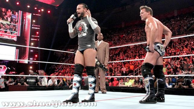 Jericho:因为你的能力实在是太平庸了,所以我必须在场,确保整件事情能够顺利完成,更不用说,Teddy,你要剥夺CM Punk的冠军头衔,我当然不能错过了,这样你才能够将冠军腰带亲自递给我。