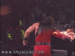 1999年2月22日,RAW。Kane和Undertaker之间的第二场地狱火焰比赛,这次是Kane的脚着火,他输掉比赛。