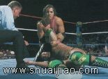 | 经过多次交战之后,布雷特对剃刀雷蒙的战法已经很有心得。 | 雪崩式吊车翻摔!这一招让布雷特拿到决胜战的门票。 | 赛后完美先生很有风度的跟布雷特握手。事实上,当时的完美先生已经转型成为正派人物了。 | 毕加罗的力量大、速度快,但是仍然敌不过布雷特的凶器攻击……… |