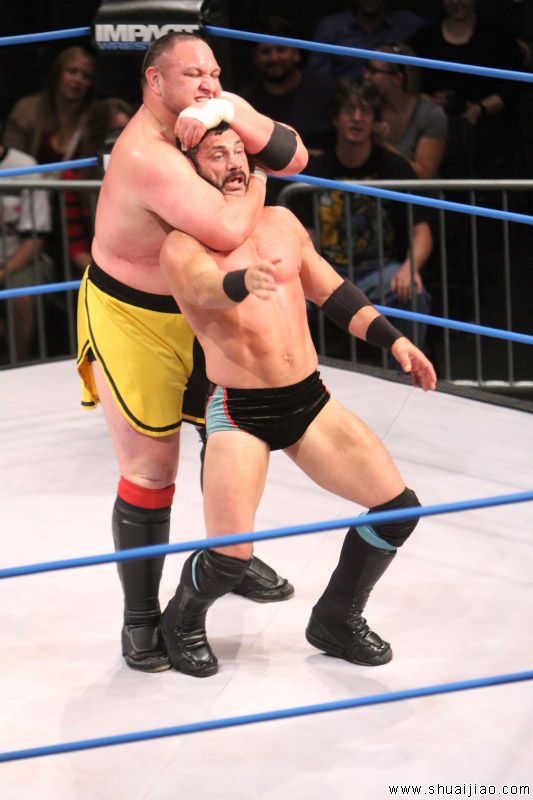 饿狼组合也在和科特·安格(Kurt Angle)尔聊天,似乎他们已经敲定了比赛规则。安格尔更是豪言这场比赛将会是年度最佳赛事。