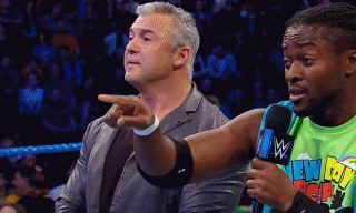 这周的SD一开场,SD的总监肖恩·麦克曼(Shane McMahon)便清出了前一天晚上去RAW节目上捣乱导致圣盾(The Shield)的冠军易手的新一天(The New Day)组合。面对擅自独自去踢馆的新一天组合,肖恩的态度当然是。。。表扬的啦!