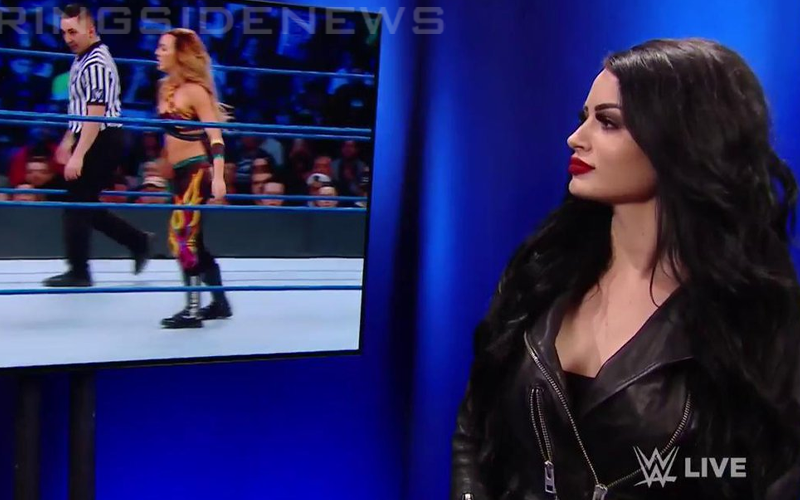 北京时间2019年4月10日进行的SmackDown节目中,我们再度在后台看到了佩奇(Paige)的身影!前段时间佩奇为了宣传电影《与家人并肩作战》,因此淡出荧幕了一段时间!虽说《与家人并肩作战》收视率一般,但相较低廉的投资成本,WWE并没亏。