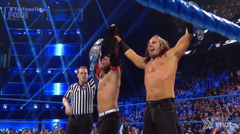 在《摔角狂热35》上,乌索兄弟面对一场四面楚歌赛都保住了胜利!然而在今日的SmackDown节目中,乌索兄弟的好运未能继续!哈迪兄弟证明了他们依然是WWE史上最杰出的双打冠军!