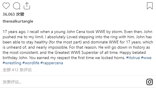 近日科特·安格(Kurt Angle)在Ins上盛赞了约翰·塞纳(John Cena)!具体内容如下!