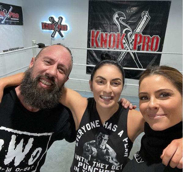 不过今天Maria Menounos表示自己目前正在接受秘密特训,而他的训练搭档就包括了WWE明星选手索尼娅·德维尔(Sonya Deville),WWE名人堂成员X-Pac(X-Pac)!而她训练所在的场地就在里克希(Rikishi)的Knokx职业健身馆中!