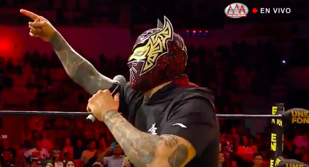 摔角网讯,北京时间2019年12月15日,辛·卡拉突然以WWE的擂台形象出现在了AAA墨摔赛事中,并且帮助Pagano击退了反派杀手克罗斯(Karrion Kross)!而在台下的杀手克罗斯恼羞成怒!