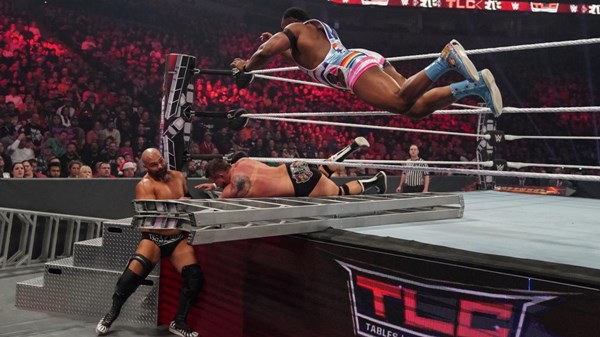 摔角网讯,北京时间2019年12月16日进行的TLC大赛中,新一天(The New Day)组合同复兴组合(The Revival)拉开了正赛的序幕!双方展开了一场异常精彩的阶梯赛!两支队伍为我们带来一场精彩的演出!