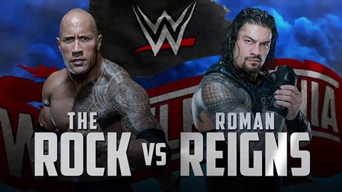 1、巨石强森 vs 罗曼·雷恩斯(Roman Reigns)