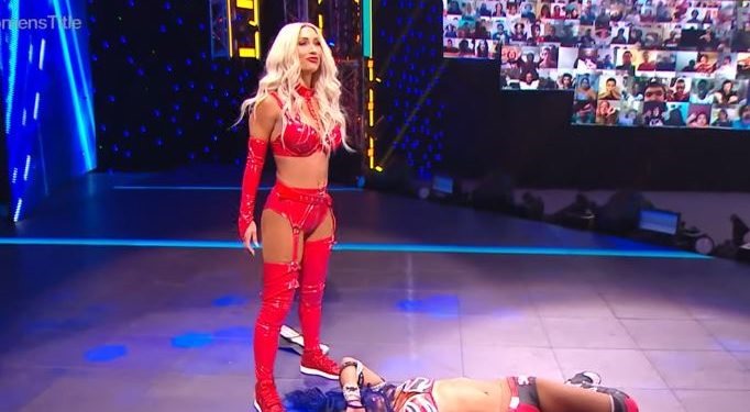 因为就在莎夏刚打完比赛,筋疲力尽之后,卡梅拉(Carmella)突然杀了出来,一记超级踢直接将莎夏打倒在地!此前RSN就对外爆料卡梅拉将得到力推,并将进入冠军剧情,如今看来果真如此!