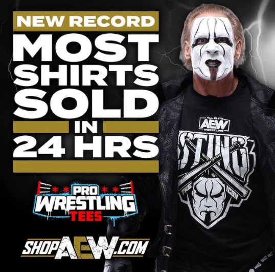 而今天Pro Wrestling Tees对外公布了一大喜讯,斯汀的新周边创下了Pro Wrestling Tees史上最高的24小时销量记录!不过该网站并未公布具体数据!购买斯汀周边的粉丝依然络绎不绝!