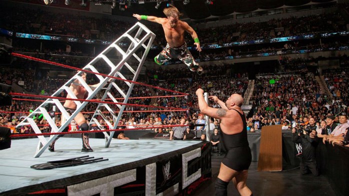 网友发的一张动图其实就是11年前,堕落时代(DX)军团成员肖恩·迈克尔斯(Shawn Michaels)搭档HHH(Triple H)迎战克里斯·杰里科以及大秀哥(Big Show)的一场比赛!在这场贝斯中,后者输得相当惨,而DX军团摘得WWE双打冠军!