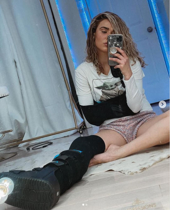 目前处于剧情伤病状态!今天拉娜晒出了自己伤情照,如下图所示!