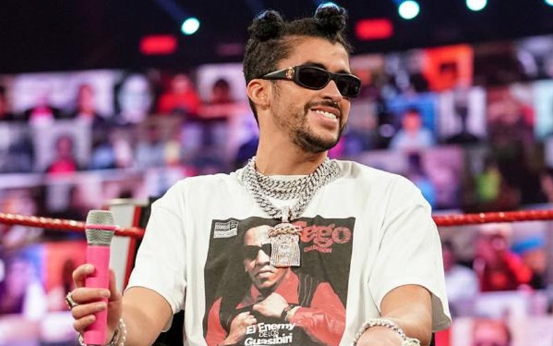 摔角网讯,知名饶舌歌手坏痞兔(Bad Bunny)在《皇家大战2021》现场演唱了《布克T》这首单曲,并且在男子上绳挑战赛中,他还上演了高绳飞扑!