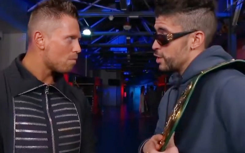 摔角网讯,米兹(The Miz)如今贵为WWE冠军,而坏痞兔(Bad Bunny)作为现任24小时冠军,上周刚刚参加了《周六夜现场》,并且还带上了这条腰带!