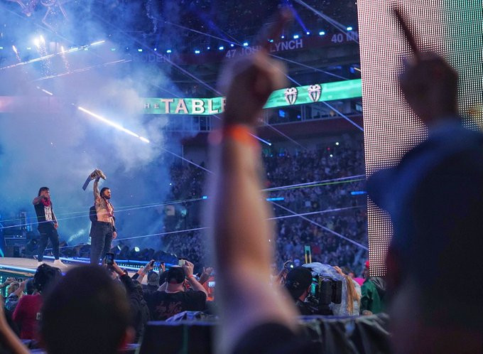 摔角网讯,在WWE《摔角狂热37》上,罗曼·雷恩斯(Roman Reigns)争议性击败了蛋妞以及艾吉(Edge),保住环球冠军,现场一片嘘声,甚至还有现场观众竖中指!